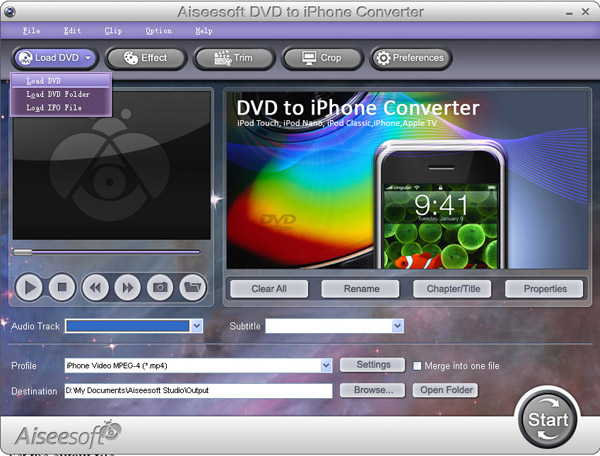 This Guide will show you how rip your DVD with Aiseesoft DVD to iphone converter in an easiest way and explain how to split/join/subtitle/crop/trim the video files when converting.